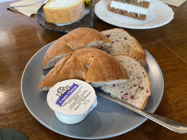 베이커리는 케이크, 스콘, 롤케이크, 베이글 등이 있다.